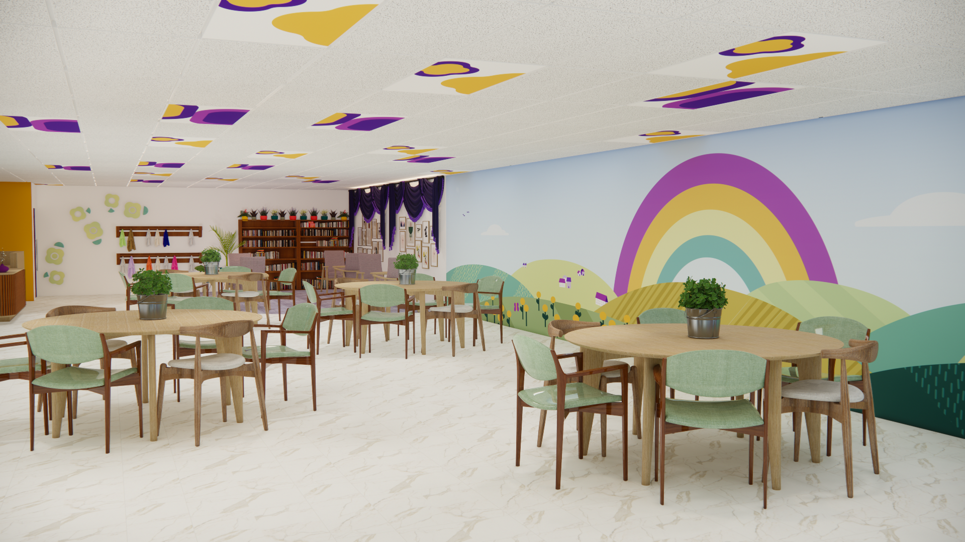 For example, they had some issues with their commercial kitchen and were hoping for more space in the new location. They also specified the need for shower stalls and laundry machines on each floor. Finally, they emphasized that rainbows are a signature graphic element in their old space. All these insights and more were invaluable to our design process!