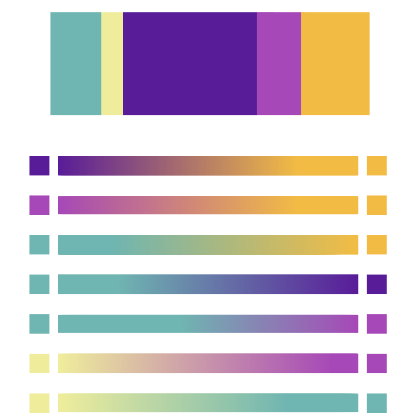 I continued using the keywords (vibrant, joyous, welcoming) to develop a body of abstract shapes, putting them into different color and form combinations to create more options for application: