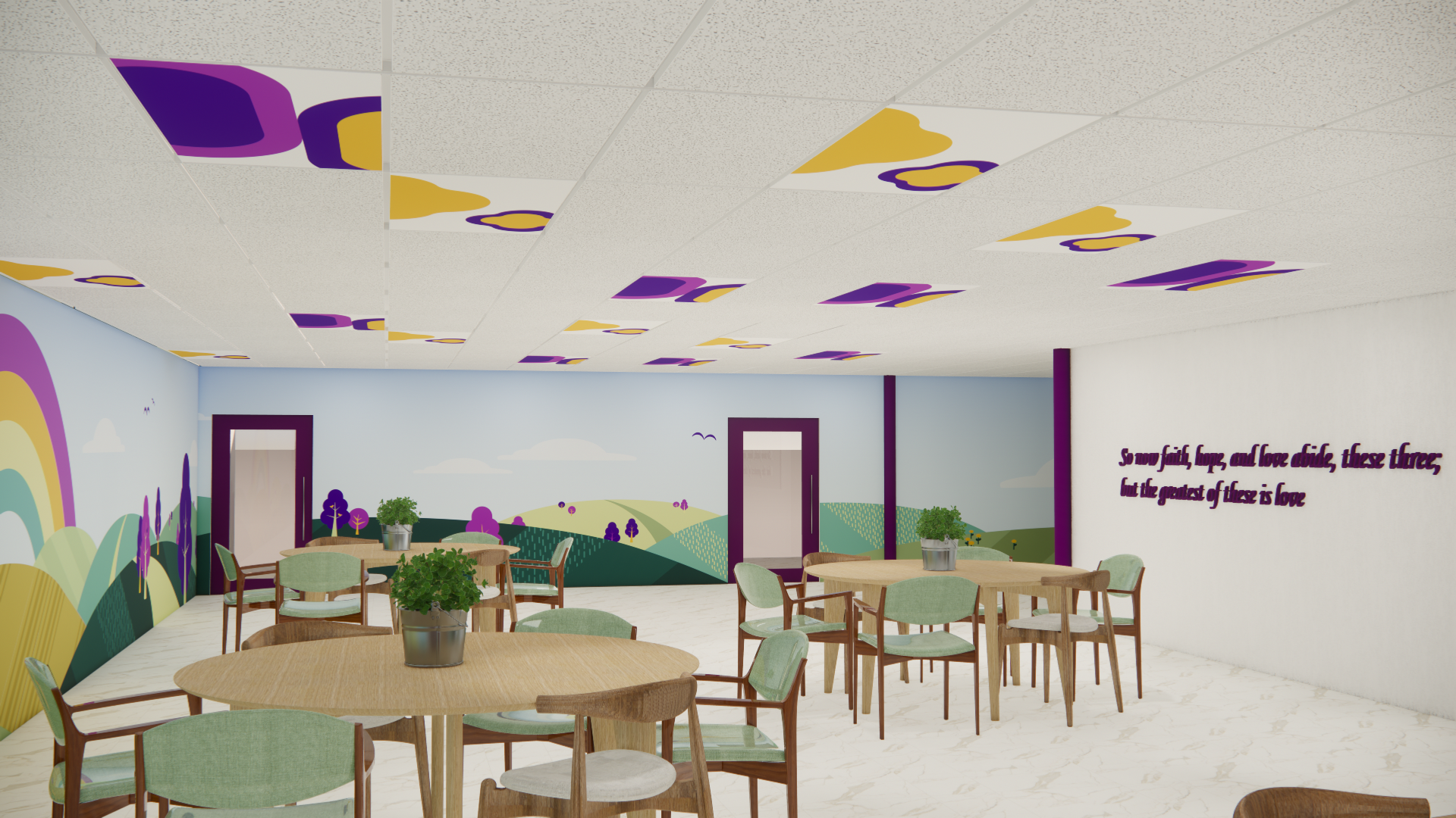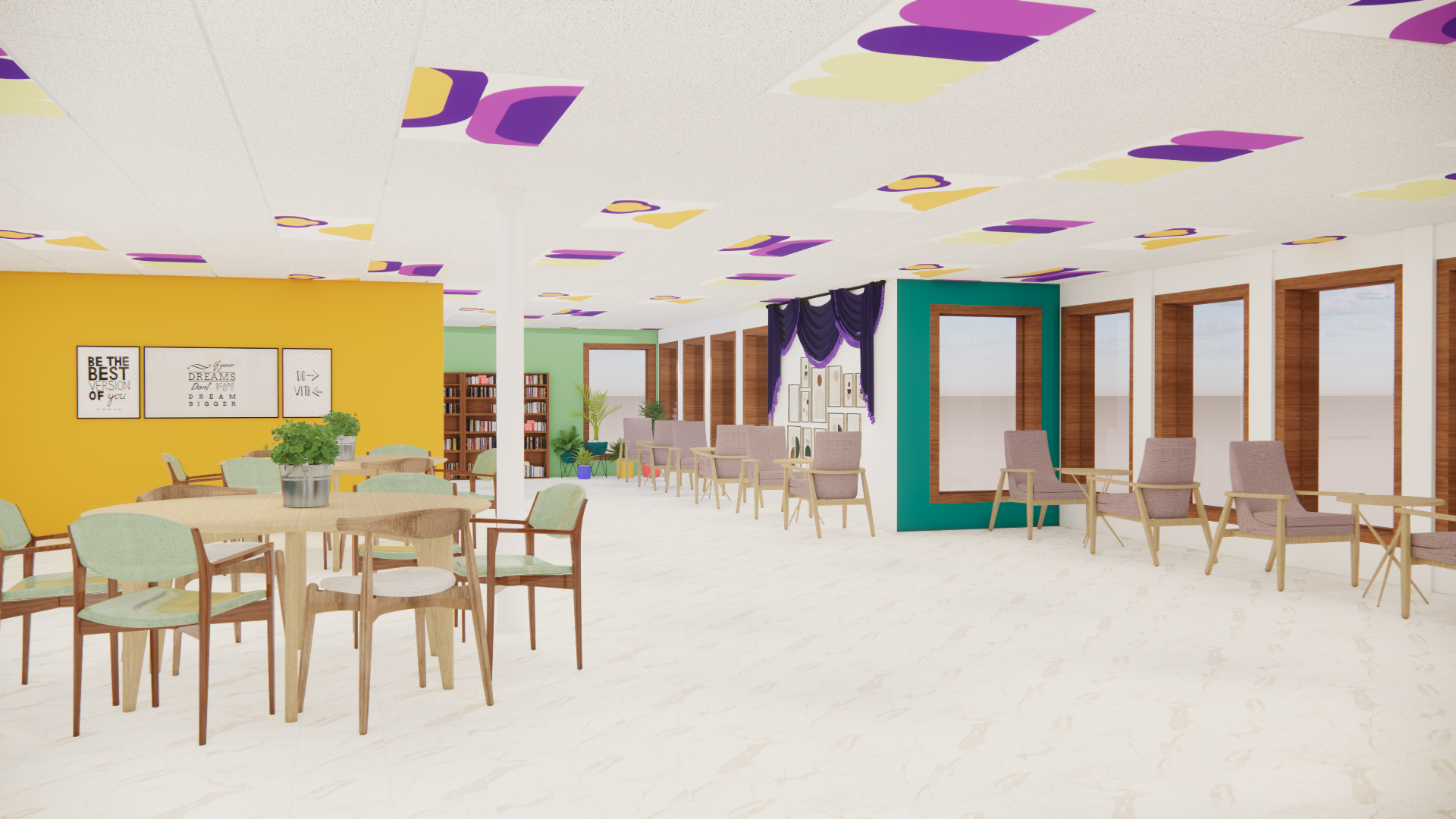 Design a custom space for Travail With Us—an adult day service—which meets the needs of both care providers and patients, depicts Travail With Us’s brand, and abides by building laws.